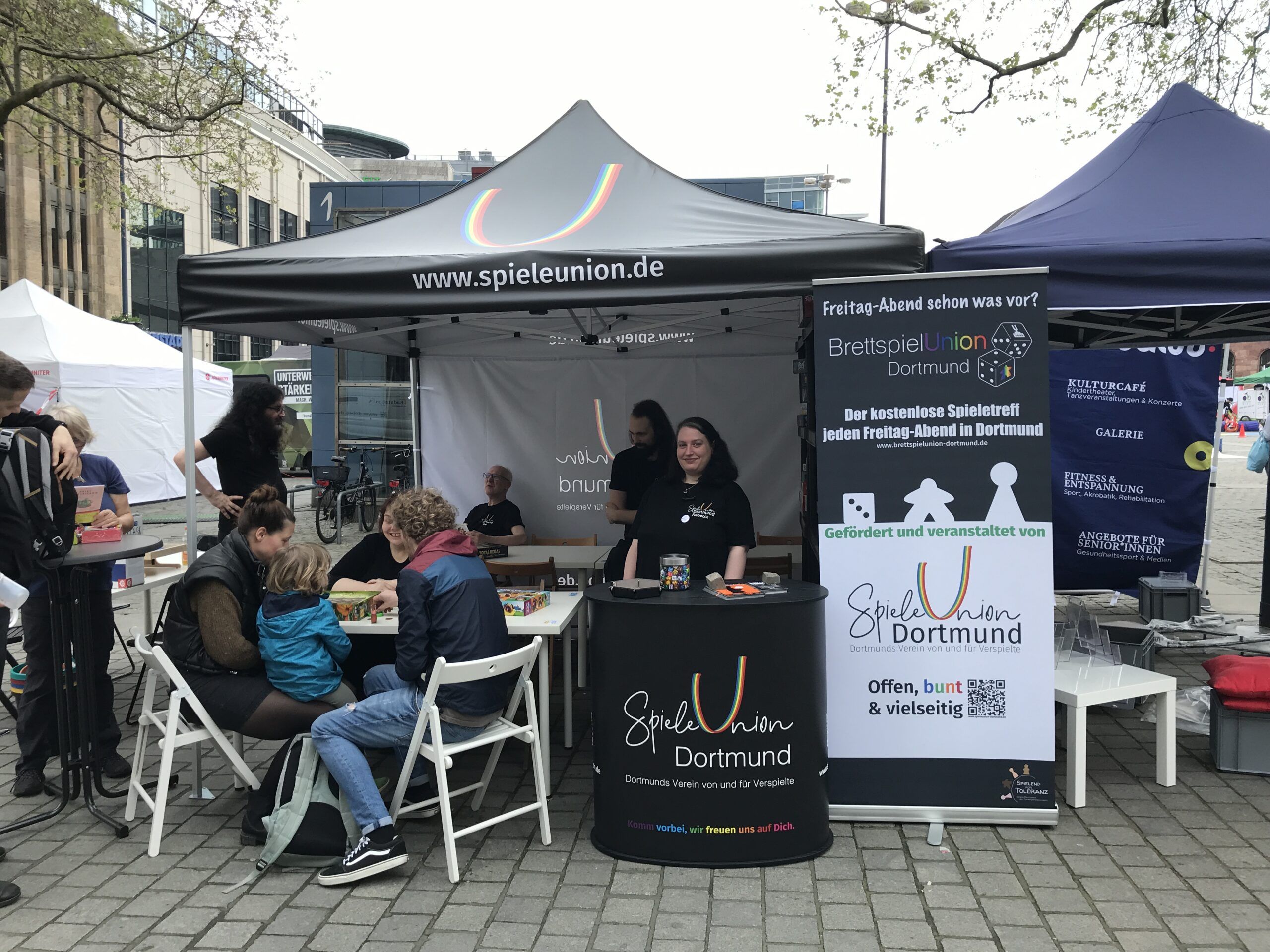 Unter der Dachmarke DORTBUNT fährt Dortmund an einem Wochenende im Mai gang groß auf. Mehrere Veranstaltungen und Formate werden unter dieser Dachmarke zusammengefasst. DORTBUNT.live, DORTBUNT.nebenan und DORTBUNT.city sind gleich 3 Formate, die vom 05. – 07.05.2023 aus Dortmund ein buntes Festival gemacht haben. Die SpieleUnion Dortmund zeigte am Sonntag den 07.05.2023 Gesicht und fuhr mit einem reichhaltigen Spieleangebot auf.
