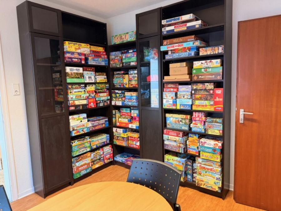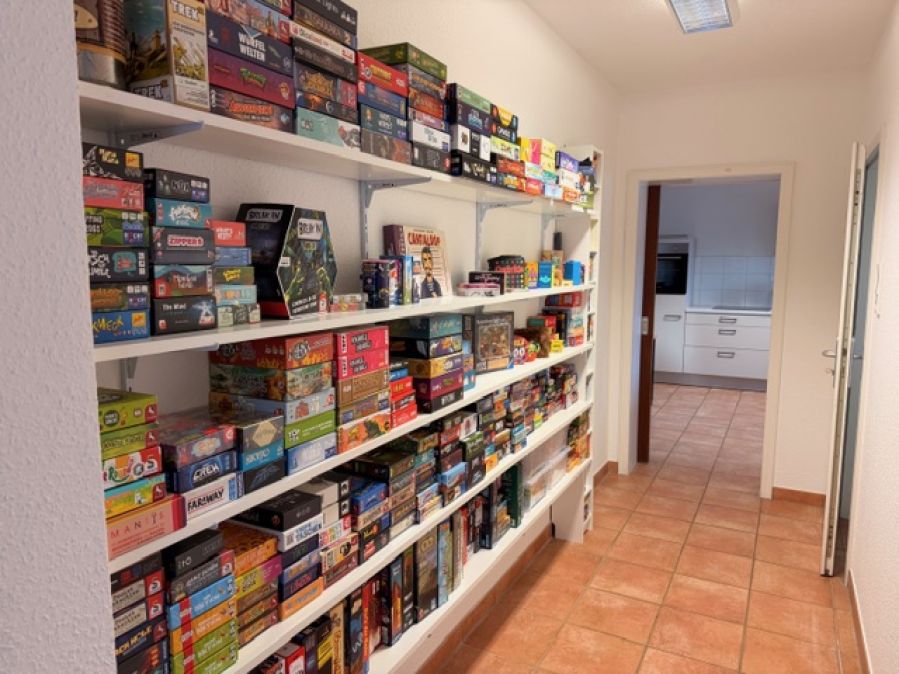 Auf 2 Etagen können aus mehreren 1000 Spielen ausgewählt werden, was gespielt werden möchte. Kinderspiele, Familienspiele, Kennerspiele und Spiele für Expert*innen.