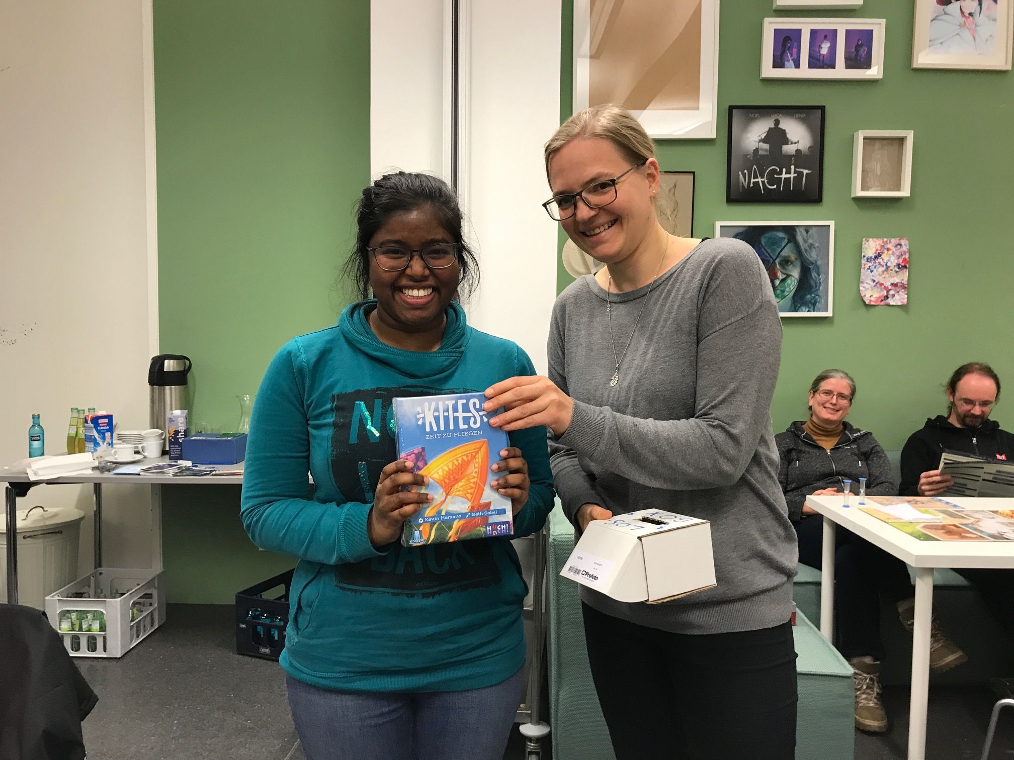 Es gibt warme und kalte Getränke und Schnuckersachen gegen Spende.